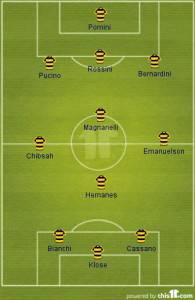 FLOP 11 (3-4-3): Pomini -2; Bernardini 4,5, Rossini 4, Pucino 2; Hernanes 4, Chibsah 4, Emanuelson 4,5, Magnanelli 4; Bianchi 4,5, Klose 4,5, Cassano 4,5